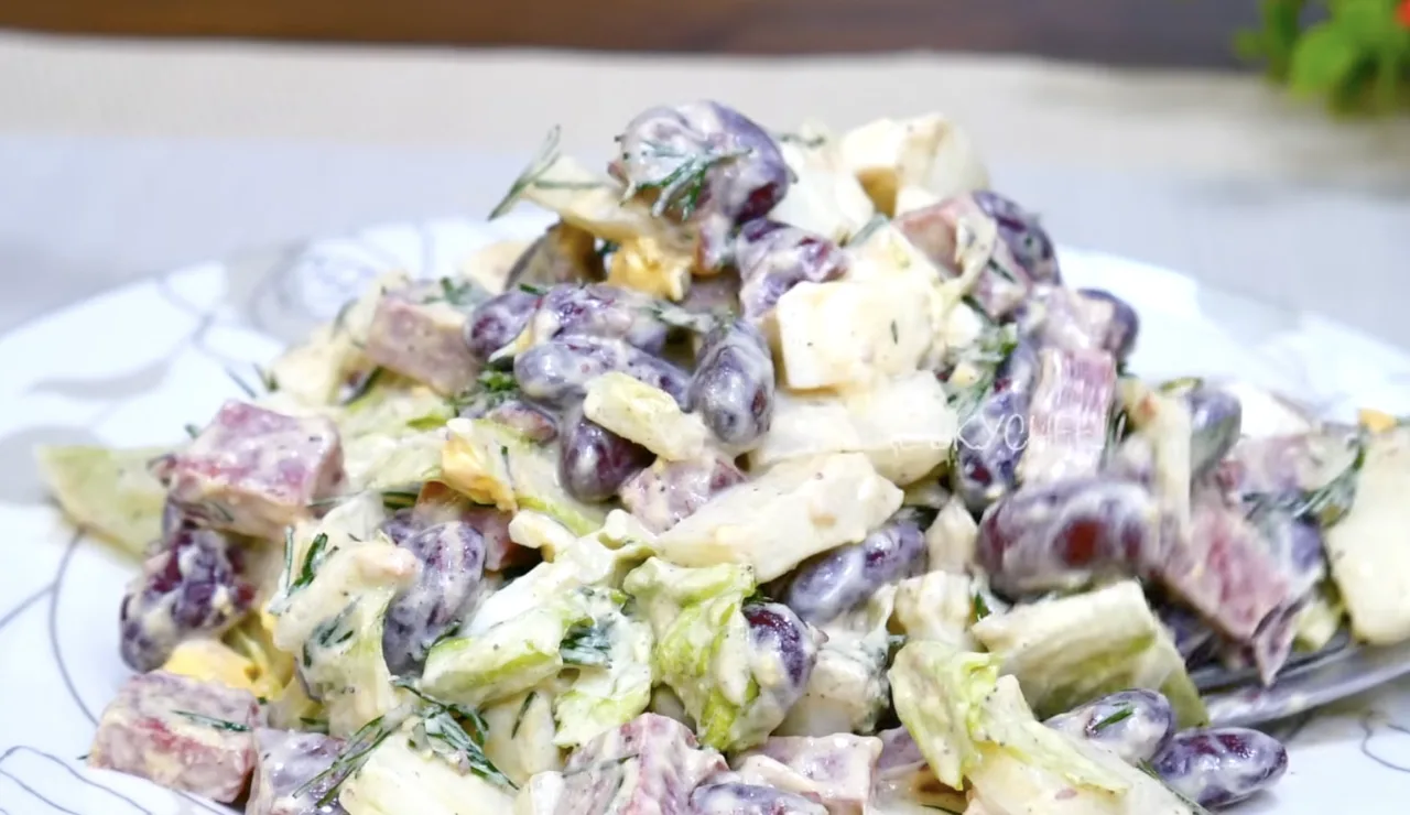 Ніжна пекінська капуста, соковита квасоля, яйця та ковбаса створюють ідеальний баланс смаку й текстури. А проста заправка зі сметани або йогурту з додаванням майонезу робить салат неймовірно ніжним. Не дивно, що моя сім’я просить готувати його по кілька разів на тиждень!