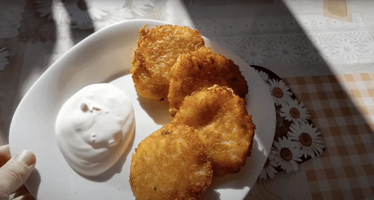 Подаємо книші зі сметаною. За рахунок начинки із картопляного пюре вони виходять дуже ніжні та незвичні за смаком, аніж звичайні деруни. Рекомендуємо спробувати.