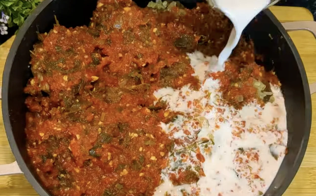 Соус розбавляємо водою, наливаємо воду в банку і збовтуємо. Додаємо сметану дві столові ложки та перемішуємо. Поливаємо тефтелі. Розподіляємо рівномірно.