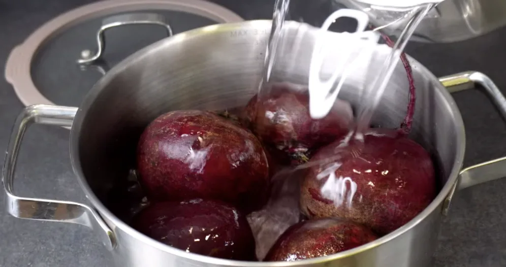 Для початку відваримо буряки 5-6 штук середніх. Добре миємо та варимо до готовності. Готовність перевіряю ножем, воду зливаю та даю охолонути.