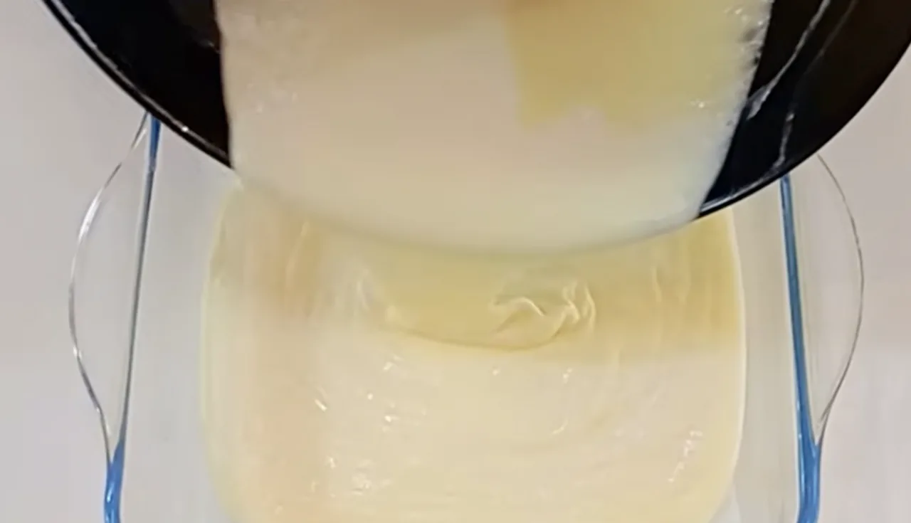 Готову повітряну масу одразу перелийте у форму, розрівняйте поверхню, накрийте плівкою та поставте в холодильник на 3–4 години до повного застигання.