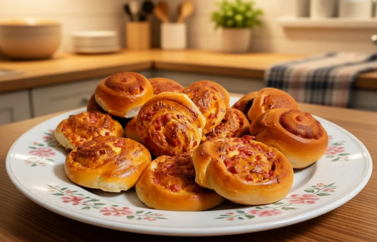 Дріжджові булочки з ковбасою та сиром