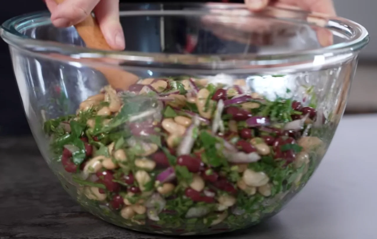 Його секрет — у поєднанні червоної та білої квасолі, великої кількості свіжої зелені та пікантної кисло-пряної заправки. Цей салат однаково добре смакує як самостійна страва, так і як гарнір до м’яса чи риби.