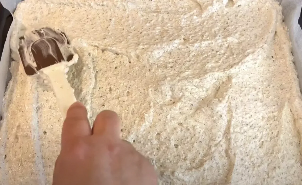 Акуратно вводжу горіхово-борошняну суміш у білки, перемішую лопаткою і викладаю тісто у форму, застелену пергаментом. Рівномірно розподіляю та випікаю при 170 °C приблизно 30 хвилин. Готовий корж повністю охолоджую.