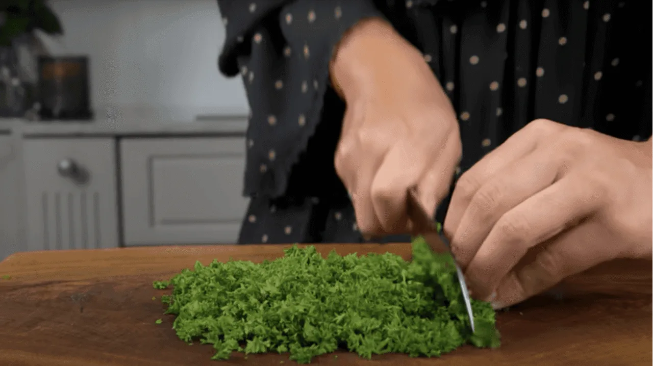 Подрібнюємо петрушку та додаємо до решти інгредієнтів.