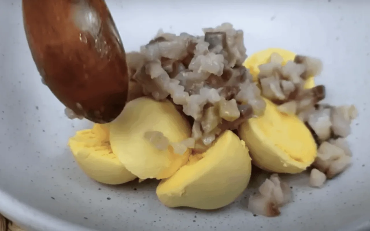 Отриманою сумішшю Фаршируємо яйця, викладаємо на тарілку і подаємо до столу.