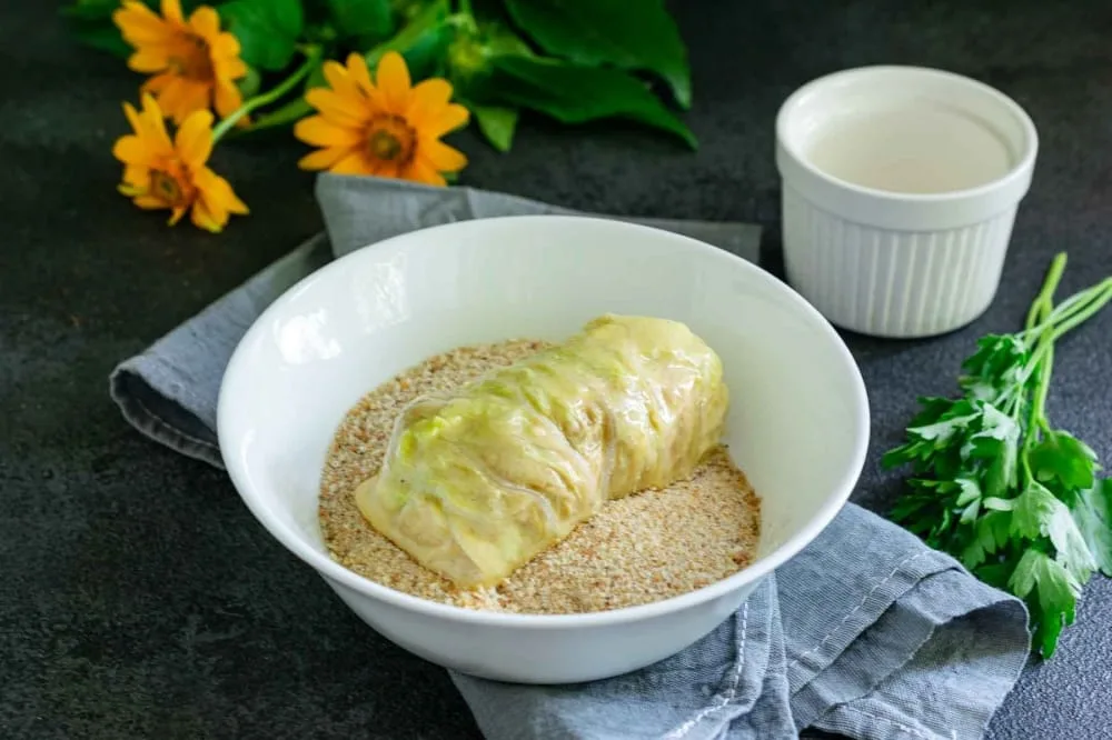 Потім обваляйте голубці у подрібнених сухарях з усіх боків.