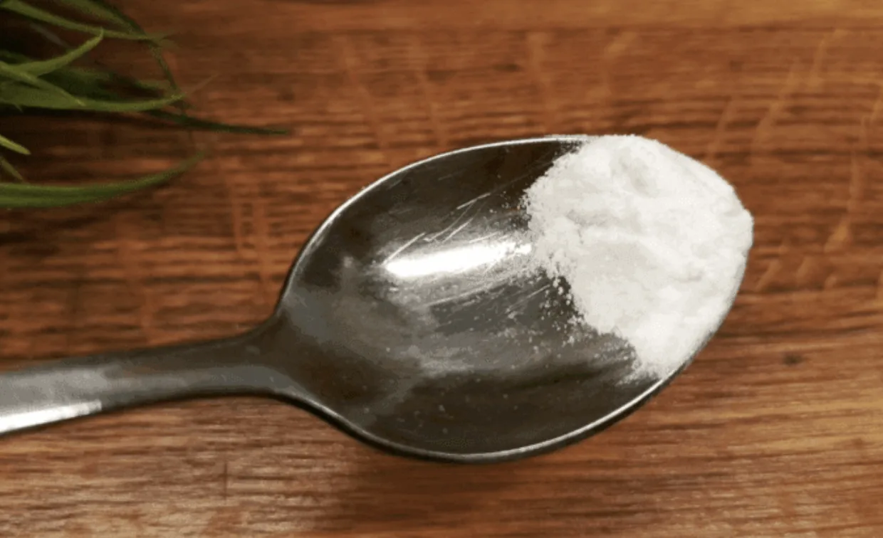 Беру приблизно 0,4 ч. л. соди і просіюю через ситечко в тісто.
