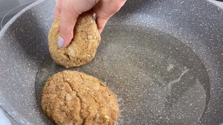 Кладемо сформовані котлети в сковороду. Обсмажуємо до золотистої скоринки з обох боків на середньому вогні (сильний вогонь не роблю, щоб приготувалися всередині). Я кришкою не накриваю і смажу з кожного боку приблизно по 4 хвилини.
