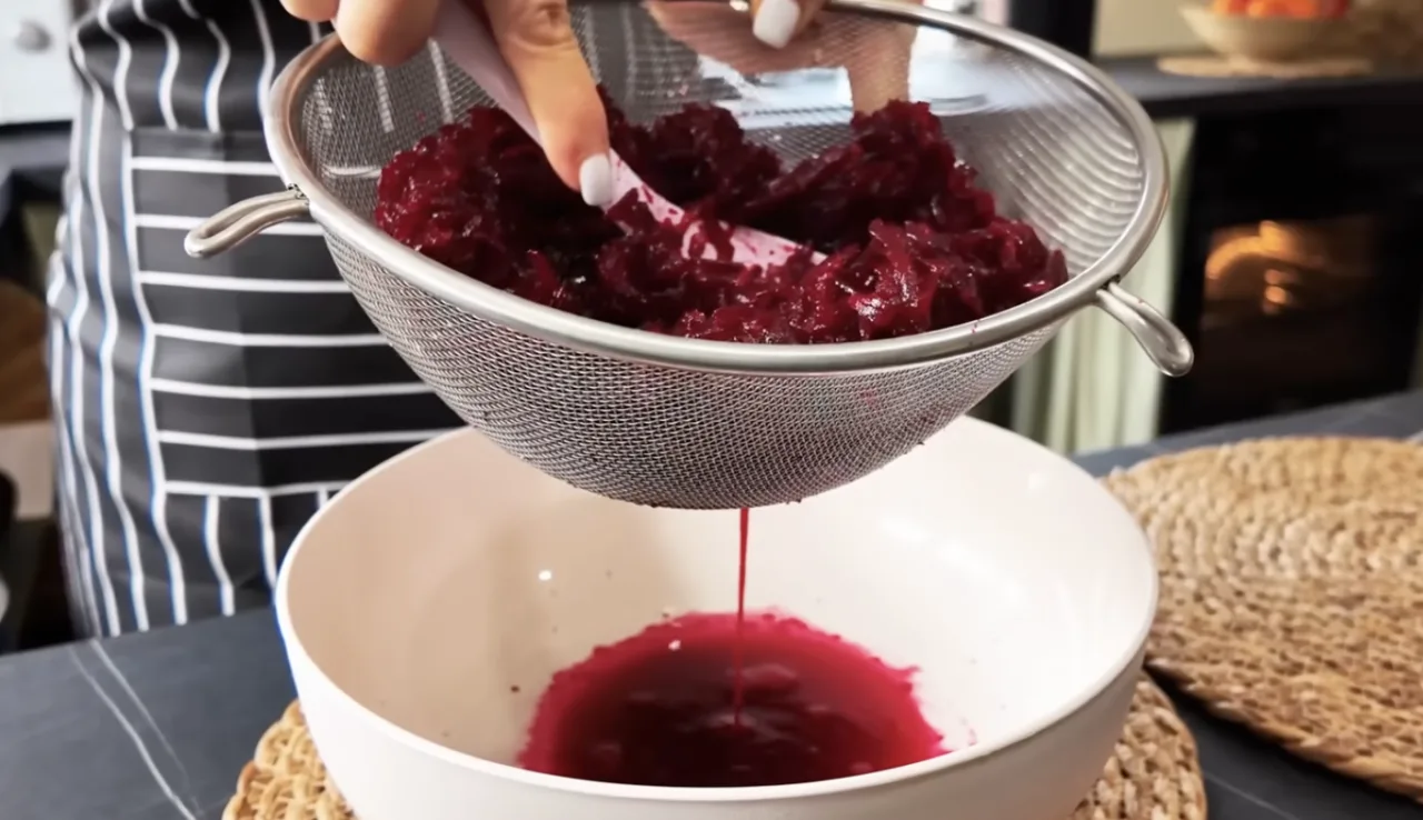 Буряк очищаємо і натираємо на крупній тертці. Якщо буряк дуже соковитий, віджимаємо зайвий сік ложкою або через сито. За бажанням додаємо 1–2 дрібки солі.