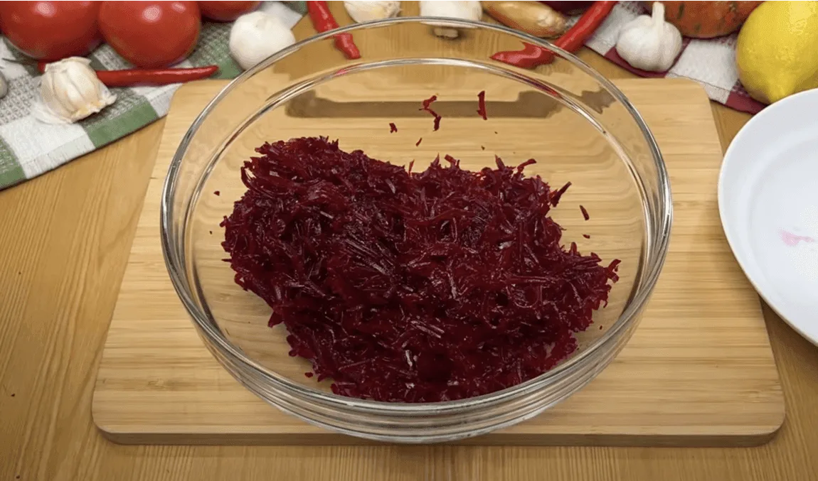 Відварений буряк натираємо на середній тертці.