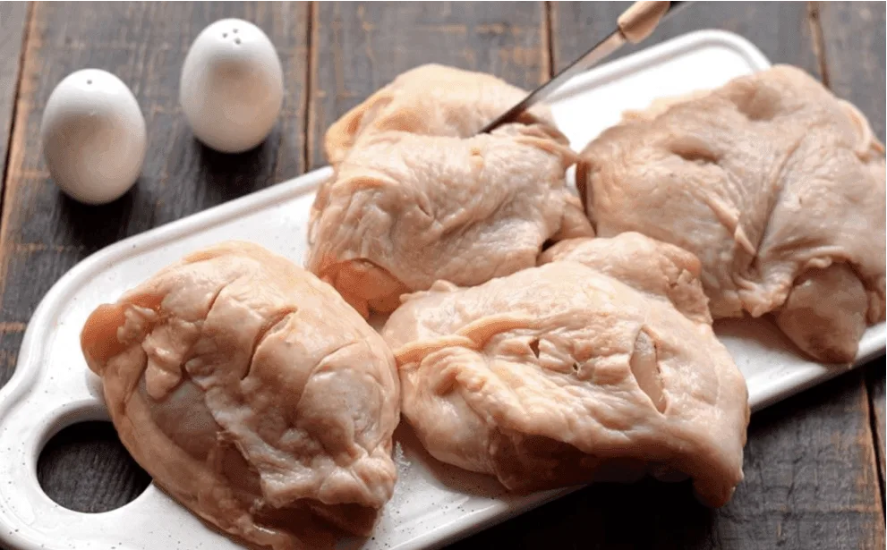 Курячі стегна промийте, вологу промокніть серветками. Зверху кожного стегна зробіть кілька проколів або надрізів ножем, щоб маринад краще просочив м’ясо.