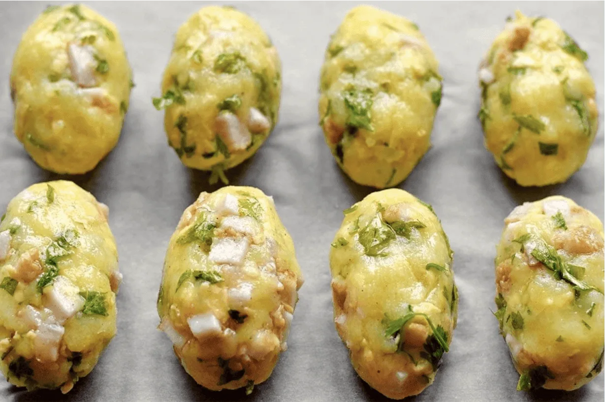 З маси сформуйте однакові биточки довгастої форми. Суміш дуже легко ліпиться, не пристає до рук.