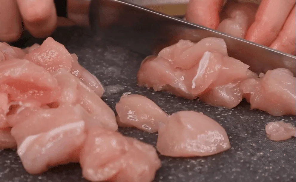 Я готуватиму з курячим філе, але можна взяти будь-яке м’ясо. Філе ріжу середніми шматочками.