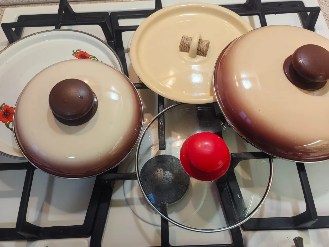Розбовтую соду і занурюю каструлі та кришки, скільки поміститься. Залишаю на ніч або на добу. Потім дістаю, споліскую від содового розчину під краном і змиваю жир губкою. Все легко змивається, не треба навіть терти. Якщо щось не відійшло, повертаю каструлю відмокати ще на ніч. Після цього зазвичай відходить все.