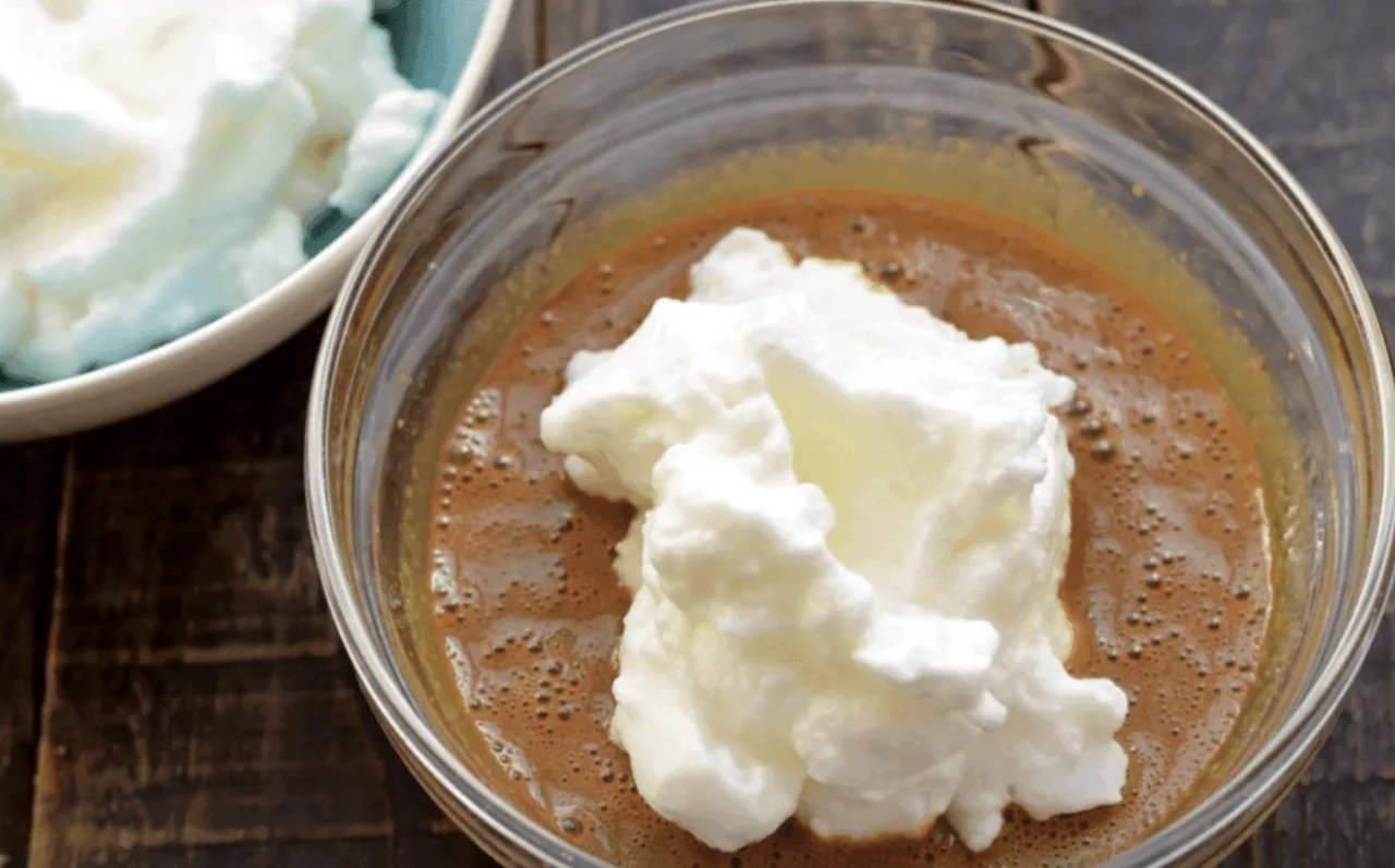 Збиті білки невеликими порціями додайте в молоко з жовтками.