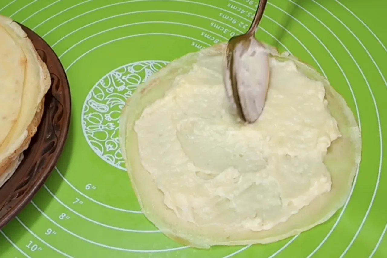 Ці млинці виходять ніжними, шовковими, з насиченим кремом, який не витікає і добре тримає форму.