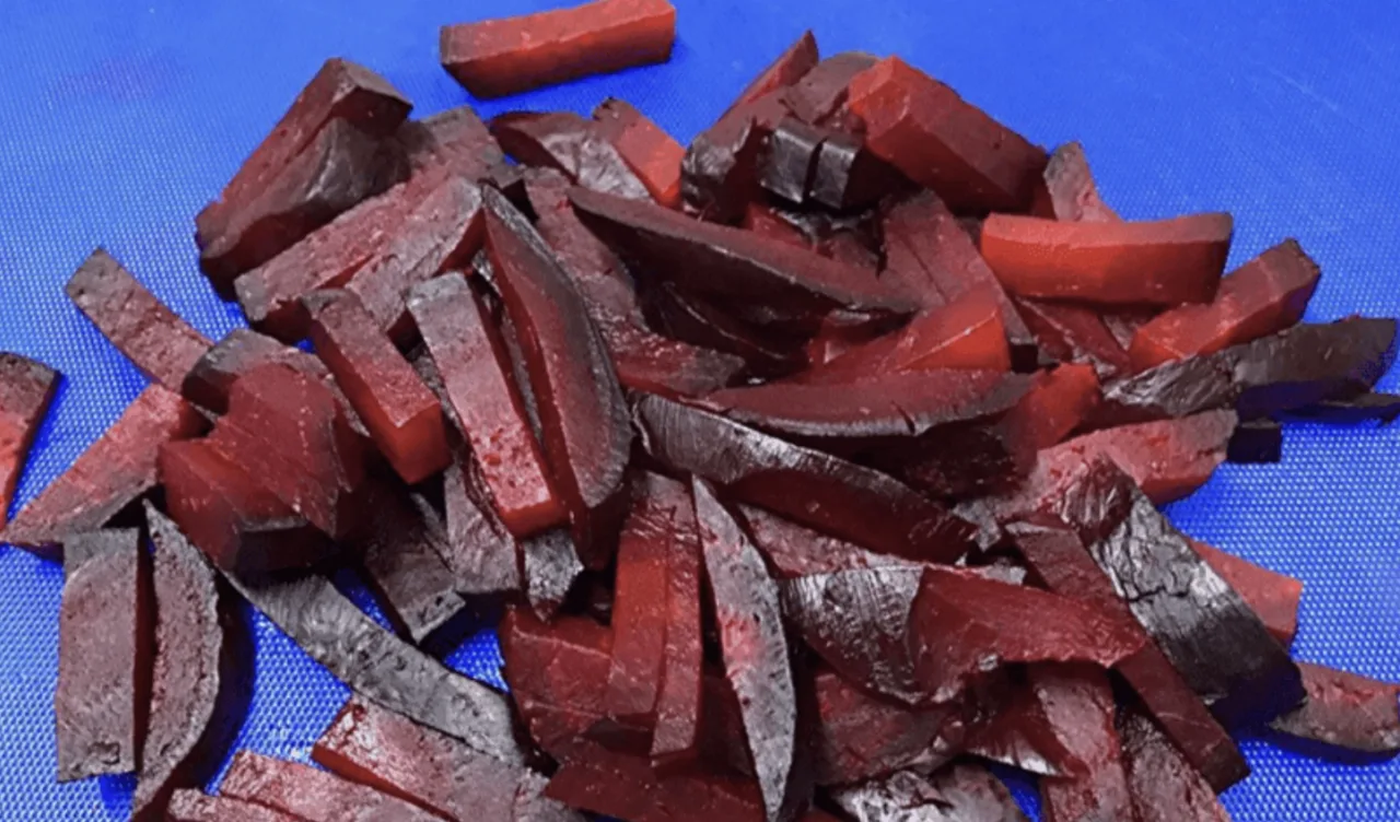 Дістаємо буряк, даємо йому охолонути, очищаємо від шкірки та нарізаємо на брусочки.