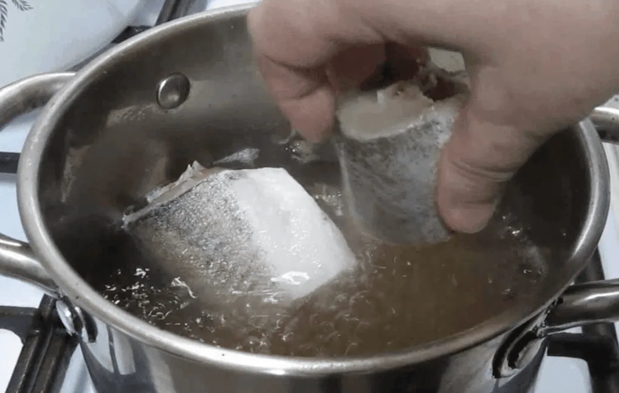 Додаю рибу. Смак риби, відвареної в огірковому розсолі, нагадує мені смак раків. Ймовірно, це через присутній аромат кропу.