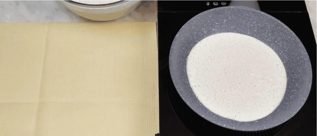 Включаємо плиту і готуємо чистий рушник, на який складатимемо готові млинці.