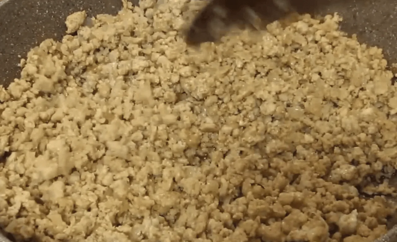 Ось такий фарш виходить. Відставляю його убік, займуся картопляним тістом.