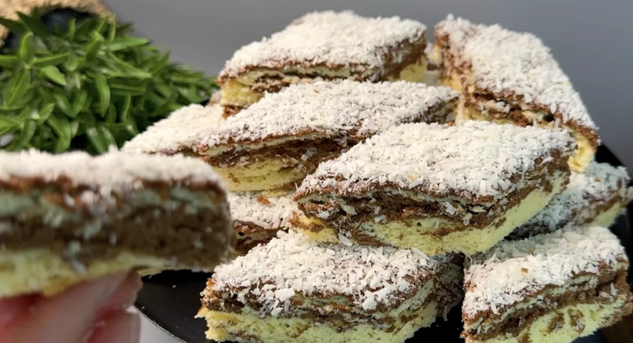 Я нещодавно привезла з Польщі рецепт цього простого, але дуже смачного печива, і тепер готую його регулярно. Воно складається з двох шарів — світлого та шоколадного — а після випікання його змащують медом і посипають кокосовою стружкою. Зовні печиво трохи хрустке, а всередині ніжне — ідеально до чаю або кави.