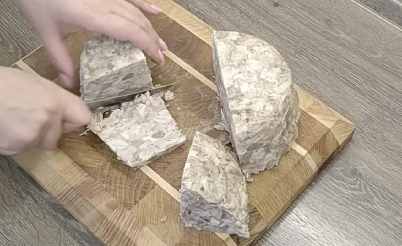 Ранком дістаю і… о, він ідеальний! Чудово тримає форму, ніжний і легко нарізається на тонкі скибочки. На хлібчик — і готовий ситний бутерброд. А на святковий стіл він стане справжньою зіркою.