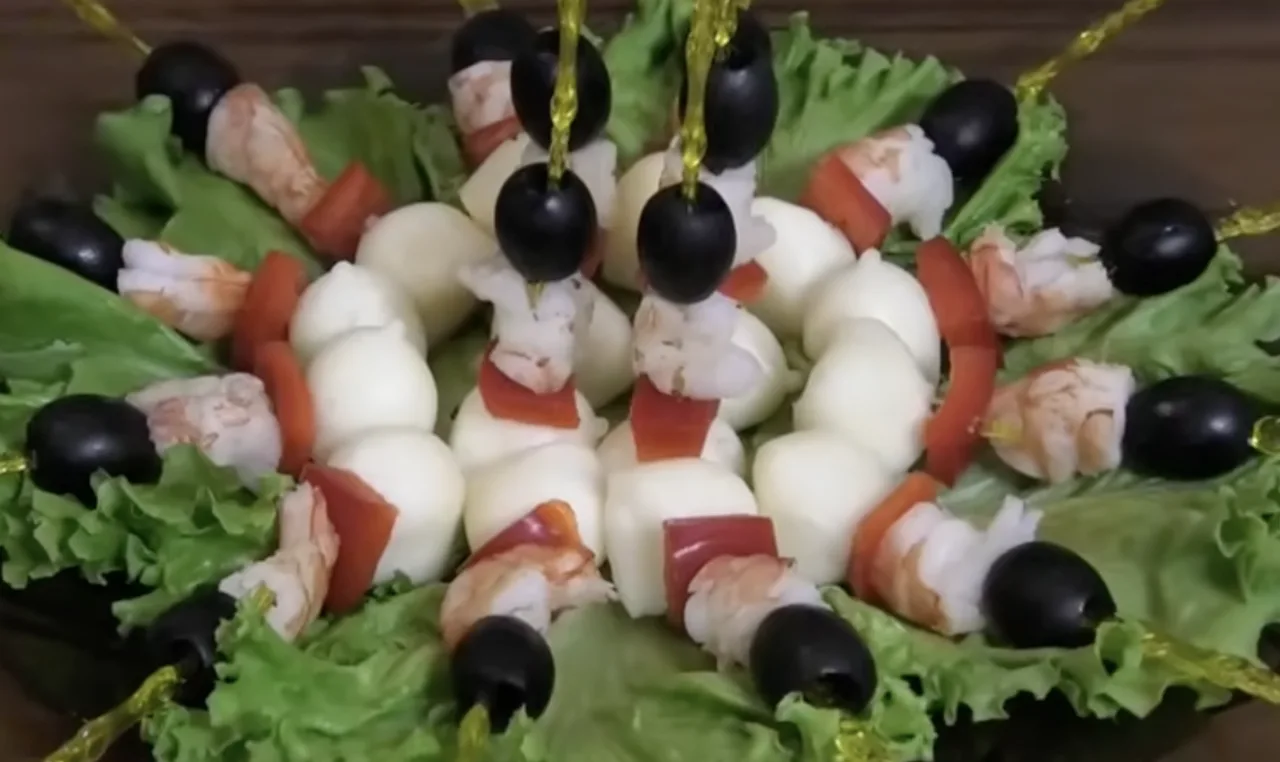 Нанизую на шпажки сир, креветки, оливки та перець. Це виглядає дуже стильно і підходить навіть для вечірок.