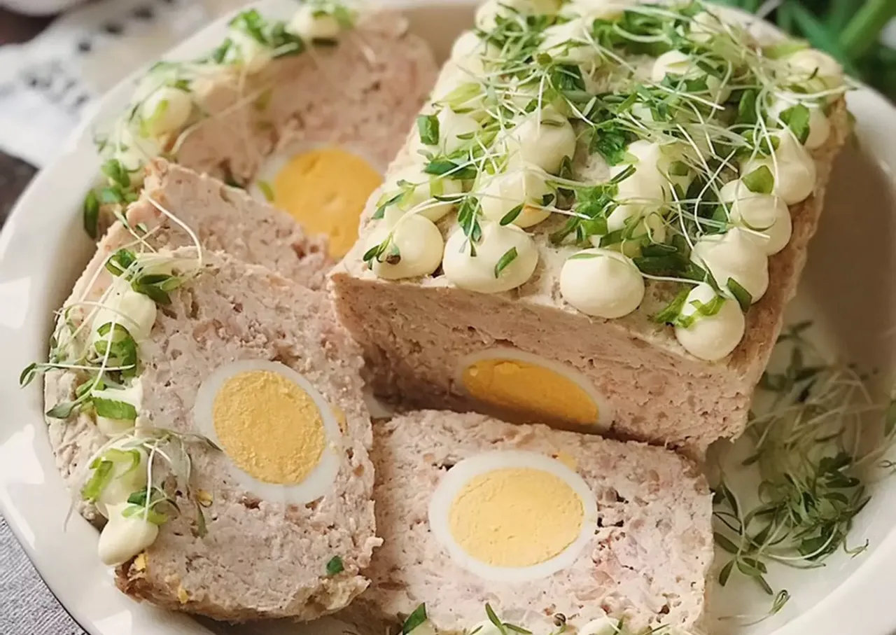 Сьогодні ділюся з вами одним із моїх найулюбленіших святкових рецептів — м’ясним хлібцем«з сюрпризом». Усередині нього — ніжні варені яйця, які створюють неймовірно красивий розріз. Саме тому я й називаю цю страву «Королем столу» — особливо на Великдень!