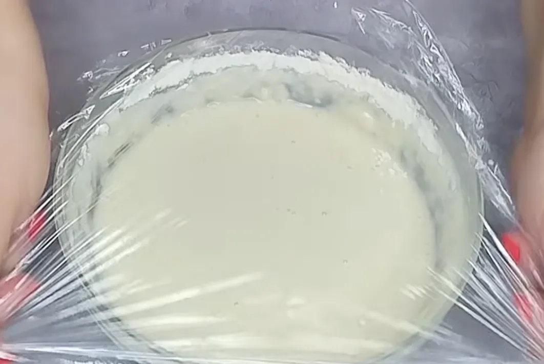 Розчиніть дріжджі та цукор у теплому молоці. Додайте борошно, перемішайте до однорідності. Накрийте миску і залиште на 15–20 хвилин до появи піни.