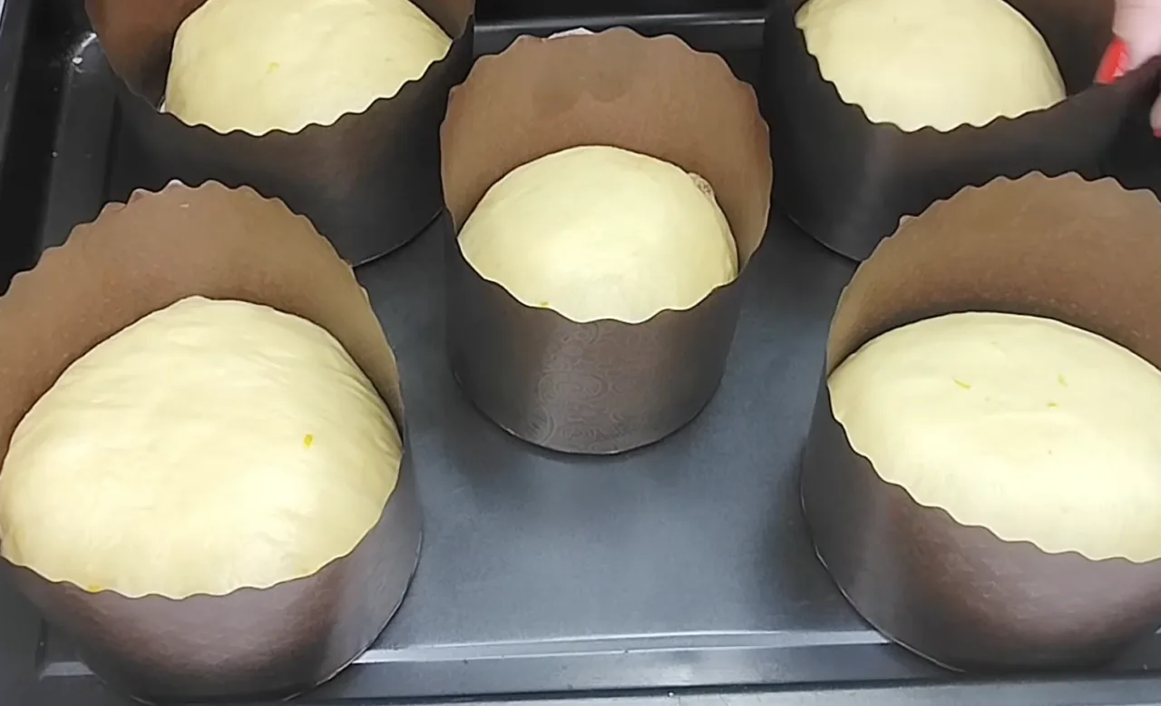 Розділіть тісто на порції відповідно до форм, викладіть у форми, накрийте і залиште ще на 30–40 хвилин для другого підходу.