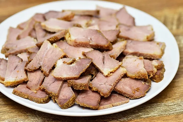 Для нарізки м’ясо охолоджуємо, ріжемо скибками — чудово підходить для бутербродів замість ковбаси.