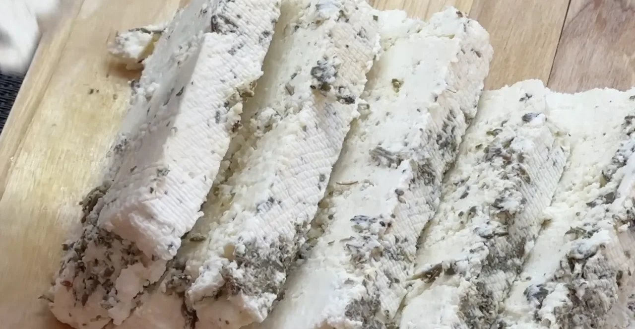 І ось — домашній сир готовий! Він виходить щільний, ніжний і дуже ароматний завдяки травам. Смачного!