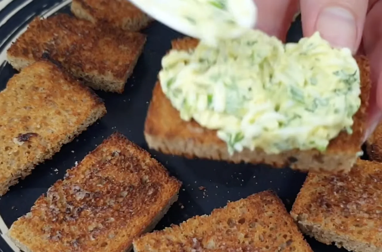На кожен шматочок хліба викладаю яєчну намазку, зверху — шматочок оселедця і трохи огірка. За бажанням ще посипаю кропом і чорним перцем. Смачного!