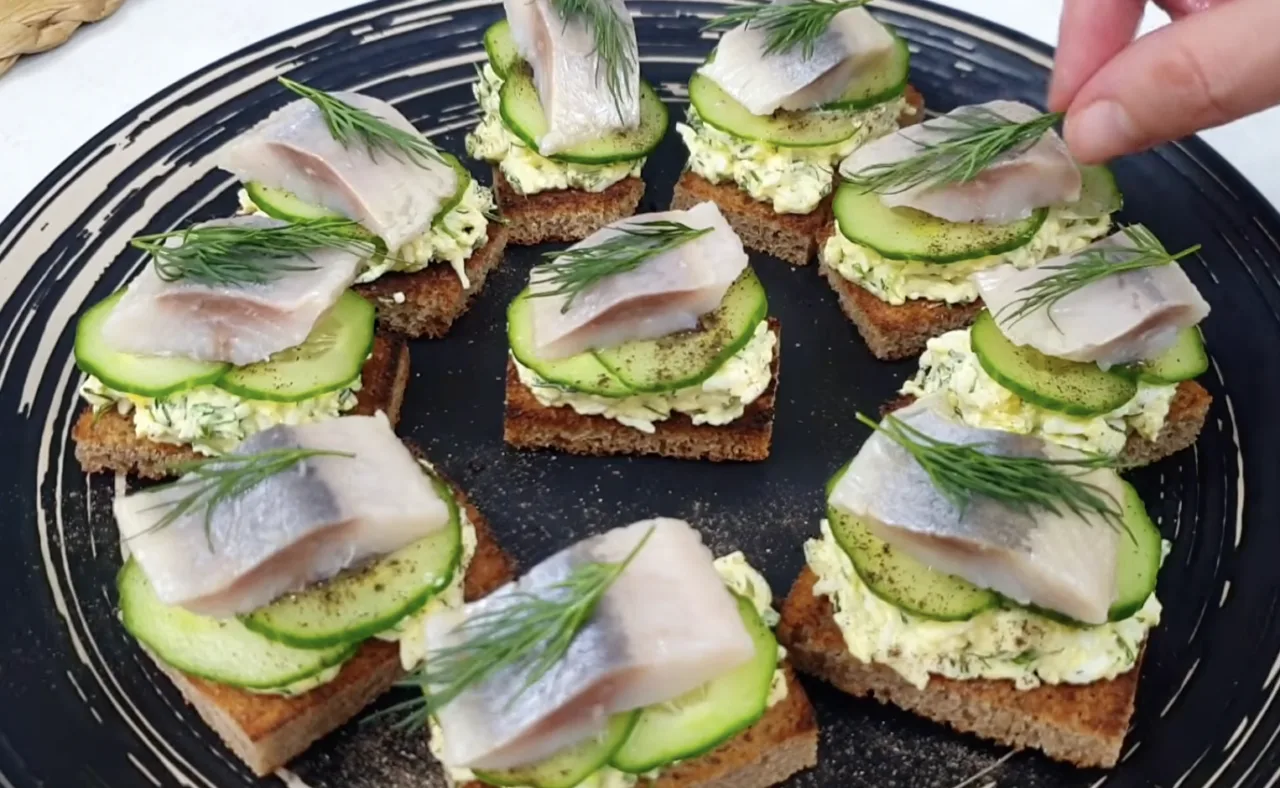Святкові бутерброди з оселедцем — прості, бюджетні й неймовірно смачні! Я їх готую, коли потрібно щось швидке, але ефектне на стіл. Чесно скажу — вони зникають першими, і кожен раз питають рецепт. Смак настільки насичений, що їх навіть жартома називають «смачнішими за чорну ікру»!