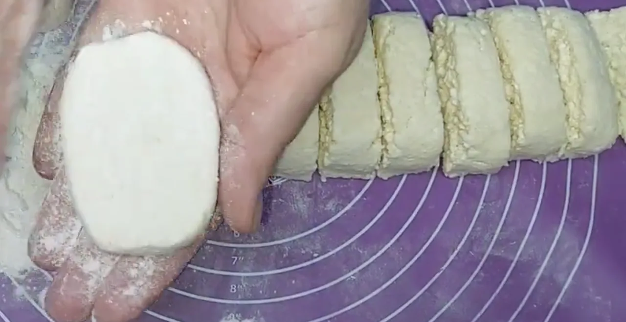 Далі всипаю 3 столові ложки манки, знову перемішую і дивлюся на консистенцію — якщо маса ще рідкувата, додаю ще трохи манки. Потім накриваю миску і залишаю на 15–20 хвилин, щоб манка набухла — завдяки цьому маса стає густішою і добре тримає форму. Після цього злегка присипаю руки борошном, беру приблизно 1,5–2 столові ложки маси, формую кульку, трохи приплюскую і обвалюю в борошні з усіх боків.