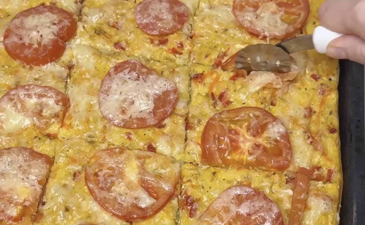 Після цього дістаю, викладаю зверху тонко нарізані помідори, посипаю тертим сиром і повертаю в духовку ще на 15 хвилин — до апетитної рум’яної скоринки.