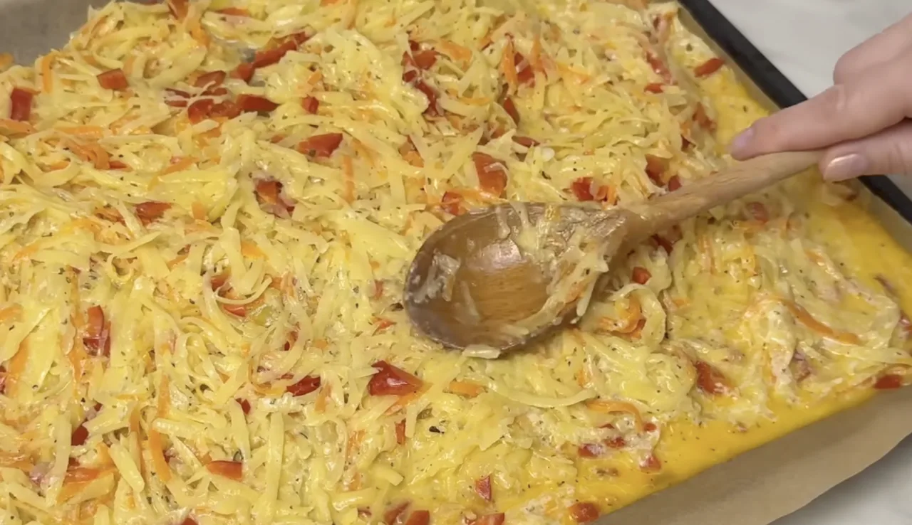 Коли не хочеться довго стояти біля плити, я готую цю вечерю “на все деко”. Мінімум клопоту, доступні інгредієнти — і в результаті виходить повноцінна страва, яка подобається всій родині. Просто натерла, змішала, відправила в духовку — і можна відпочивати.