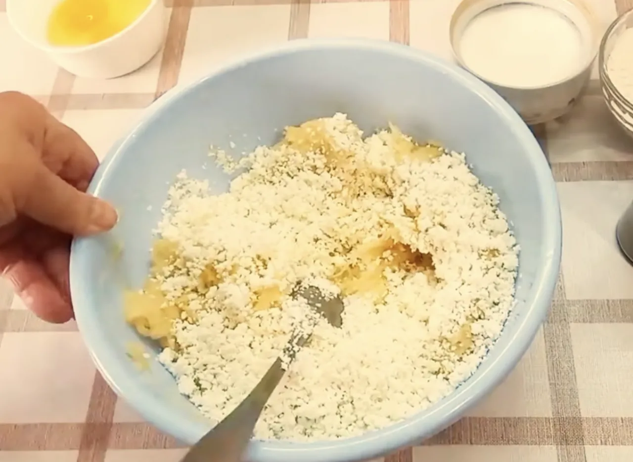 Натираю цибулю і часник, а вже потім картоплю. Одразу все змішую, щоб картопля не темніла. Сік я не зливаю, залишаю як є — так деруни виходять соковитішими. Потім додаю сир, попередньо трохи розім’явши його виделкою, щоб не було великих грудочок. Далі вбиваю яйця, додаю сіль і перець, добре перемішую і поступово всипаю борошно. Зазвичай вистачає 2–3 ложок, але якщо маса виходить рідкувата — можу додати ще трохи.