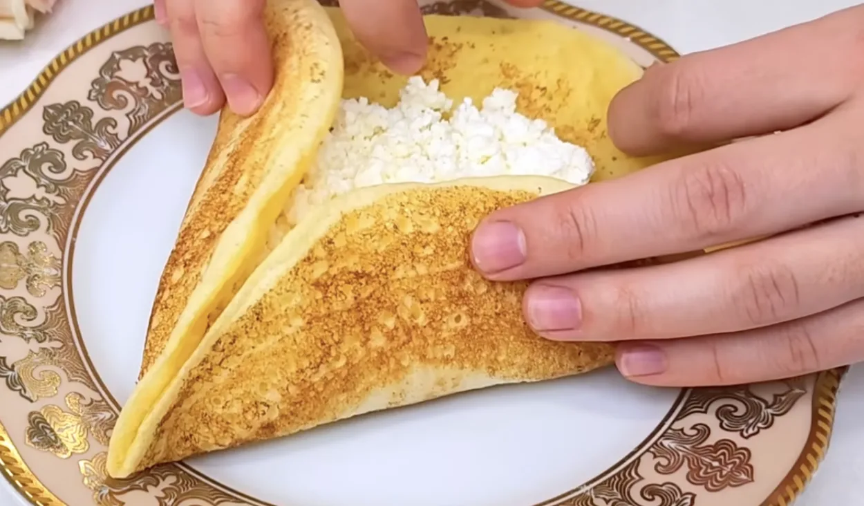 Для начинки змішую сир із цукром. Далі формую невеликі заготовки, всередину кладу сирну начинку і відправляю в духовку на кілька хвилин.