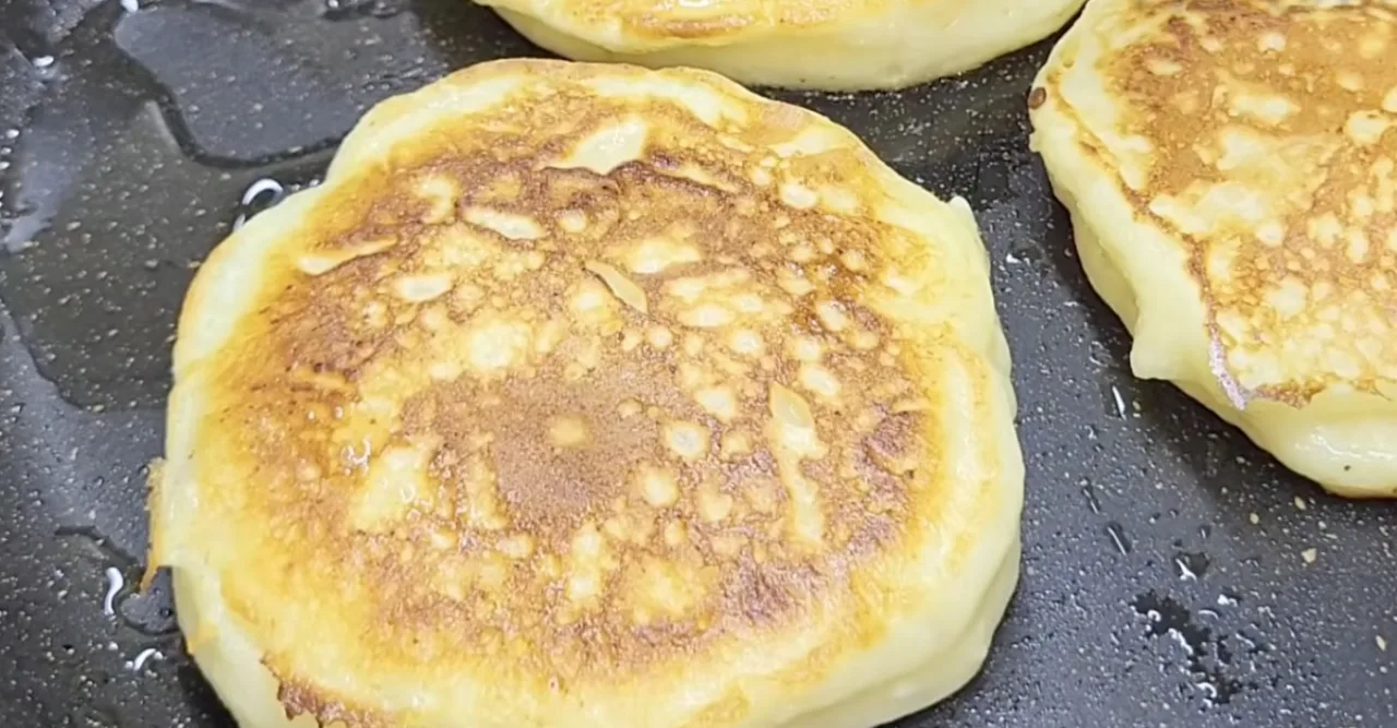 Розігріваю сковорідку, додаю трохи олії і викладаю тісто ложкою. Смажу на середньому вогні по 2–3 хвилини з кожного боку до рум’яної скоринки.