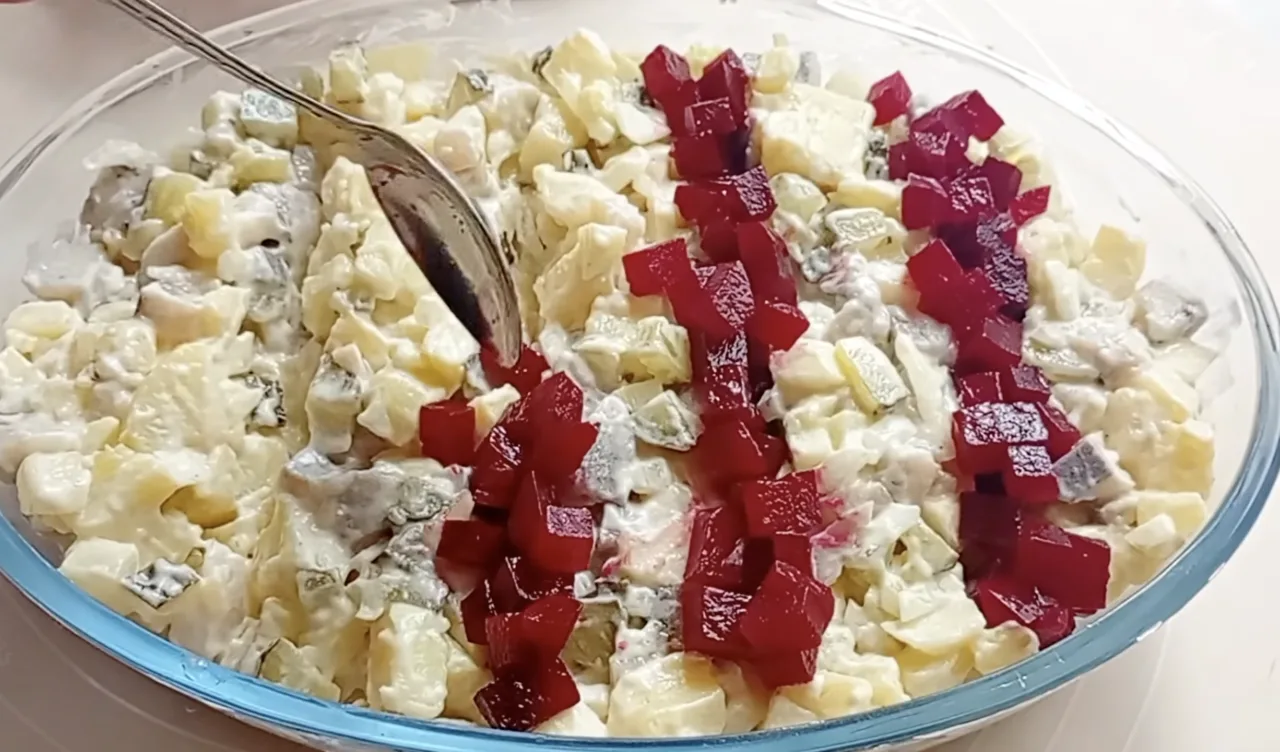 Я довго готувала класичну «шубу», поки не спробувала цей варіант. І чесно — він простіший, швидший і на смак навіть цікавіший. Ніяких шарів, ніякої метушні — усе нарізала, змішала, і готово. А результат — соковитий, ніжний салат із приємною кислинкою.